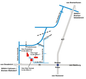 2. Abfahrt Uphusen / Bremen Mahndorf auf die „Uphuser Heerstraße“ in Richtung Gewerbegebiet Bremer Kreuz.