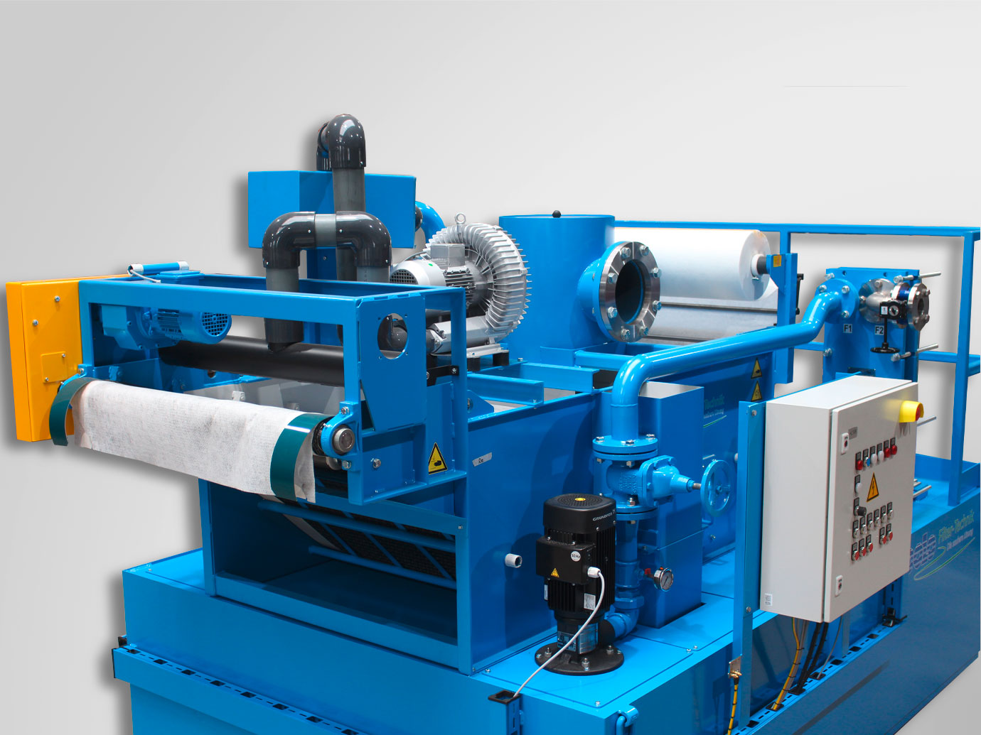 El extractor crea una presión negativa en la cámara de vacío. Esta presión negativa favorece considerablemente el caudal y da lugar a un mejor aprovechamiento del medio filtrante debido a una mayor acumulación de torta de suciedad. La torta de filtración acumulada representa una capa de filtración adicional de alta calidad que mejora el resultado de la filtración.