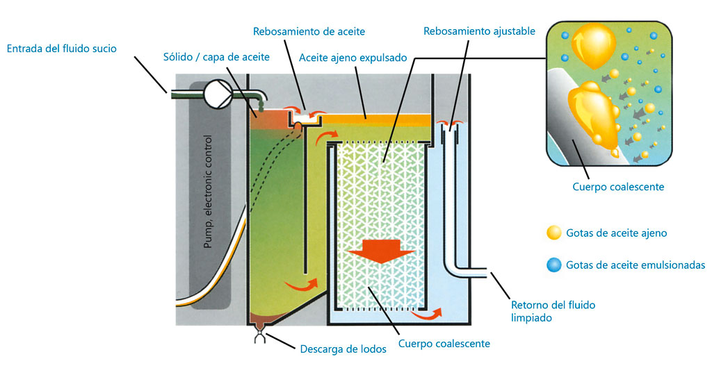 Los separadores de coalescencia se utilizan cuando hay que eliminar de las emulsiones o soluciones los aceites residuales flotantes y mezclados, así como las sustancias ajenas adheridas.