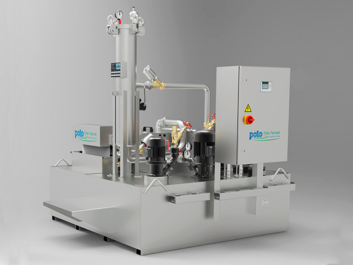Der POLO-Feinstfilter FFR ist ein geschlossenes Leitungsfiltersystem zur vollautomatischen Reinigung unterschiedlichster Flüssigkeiten. Das Besondere sind die rückspülbaren Filtereinsätze. Der Feinstfilter kann bis zu 3 μm filtern, und das trotz unterschiedlicher Volumenströme. Besondere Filtereinsätze schaffen sogar bis zu 1 μm.