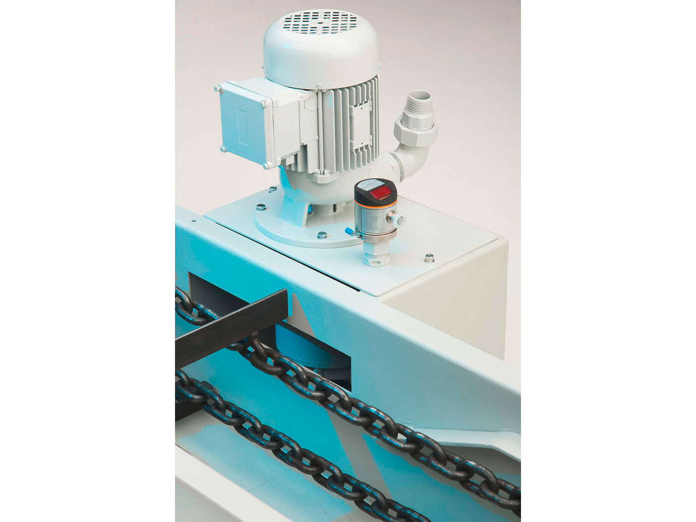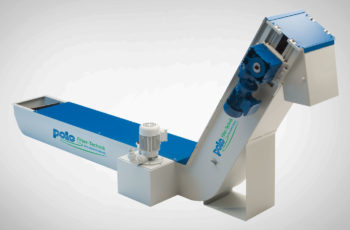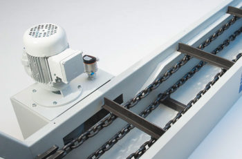 sorgen dafür, dass der Flüssigkeitsaustrag am Abwurf minimal ist. Verbunden sind die Winkel durch zwei robuste Endlosketten mit reibungsarmer Umlenkeinheit.