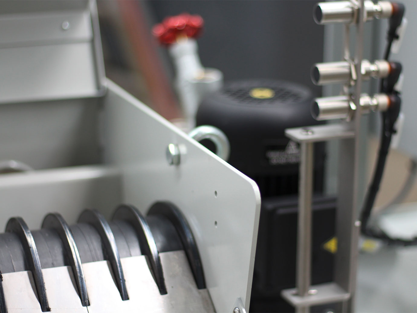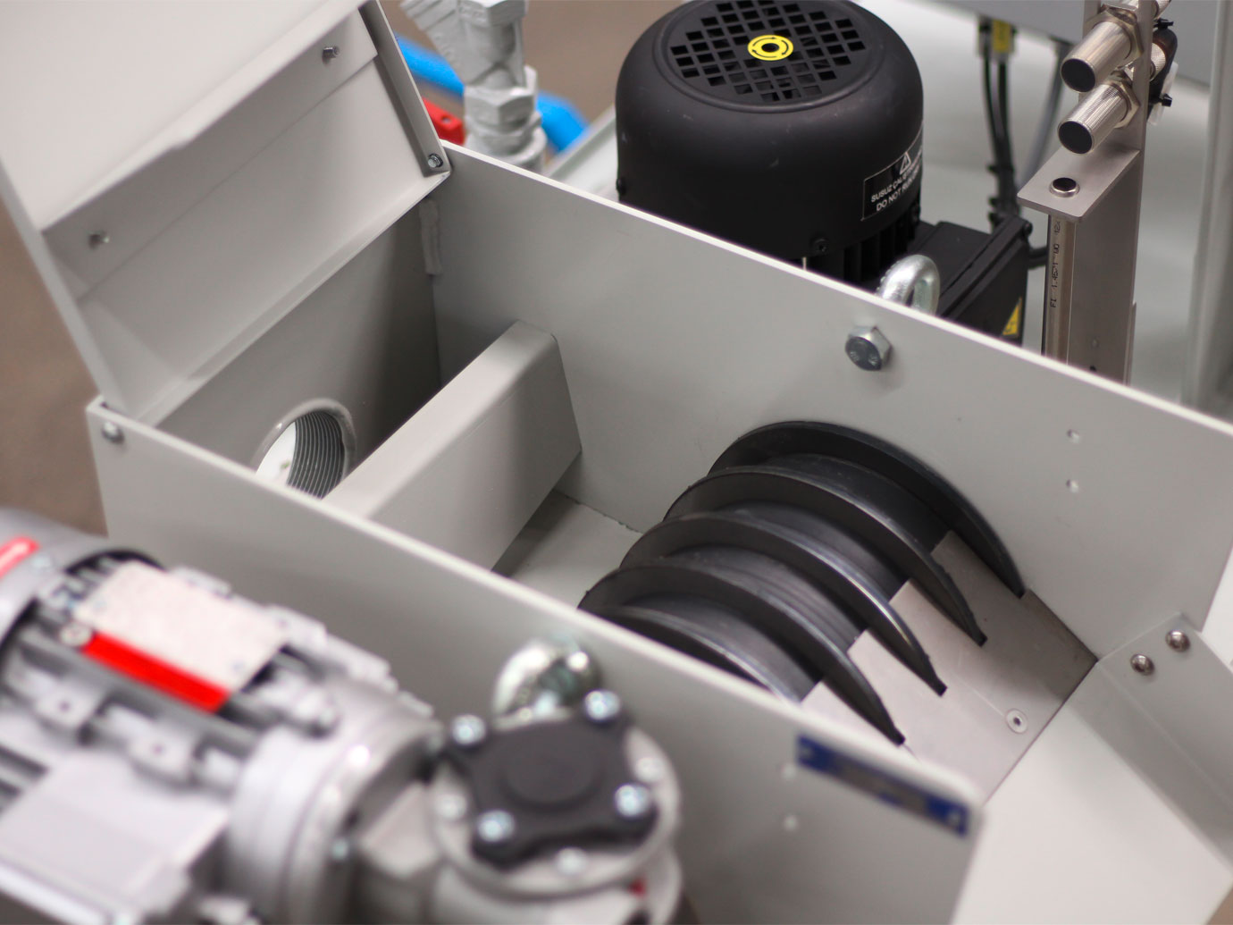 Die verunreinigte Flüssigkeit wird strömungsgünstig an die Filtereinheit geleitet und muss die filterwirksamen, starken Magnetfelder zwischen den Polscheiben durchfließen. Die ferritischen Partikel werden von den Magneten angezogen und bilden einen sich mehr und mehr verdichtenden Filterkuchen, in dem z. T. auch nicht magnetische Partikel, z. B. Schleifscheibenabriebe, zurückgehalten werden. Über ein Abstreifblech werden die Verunreinigungen von den Scheiben abgestreift und in den Schmutzbehälter geleitet. Auf Wunsch kann ein zusätzliches Schlamm-Vorschubsystem angebaut werden, welches bei sehr kleinen Partikeln und Öl zu empfehlen ist.
