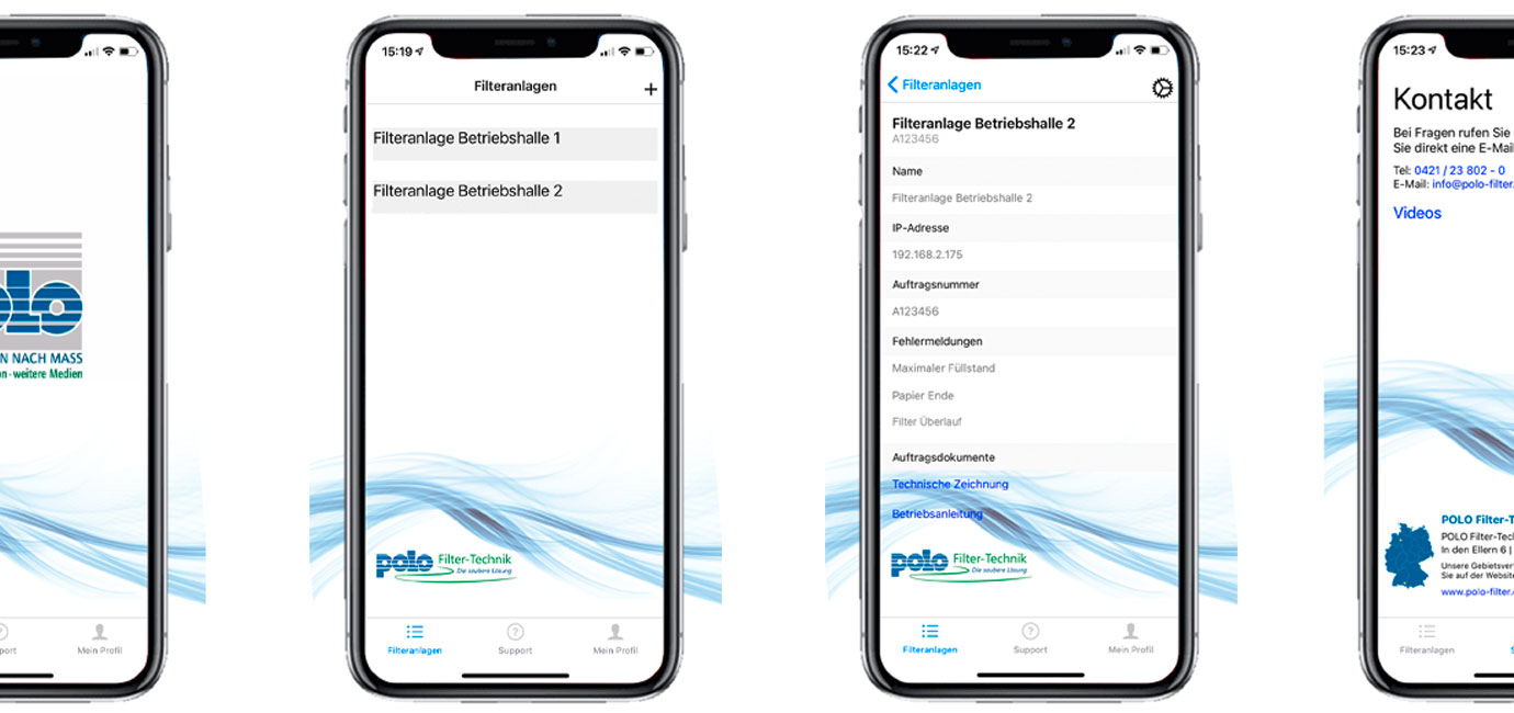 Schneller Zugriff auf sämtliche Dokumente, die zu der entsprechenden Filteranlage gehören, ist möglich.