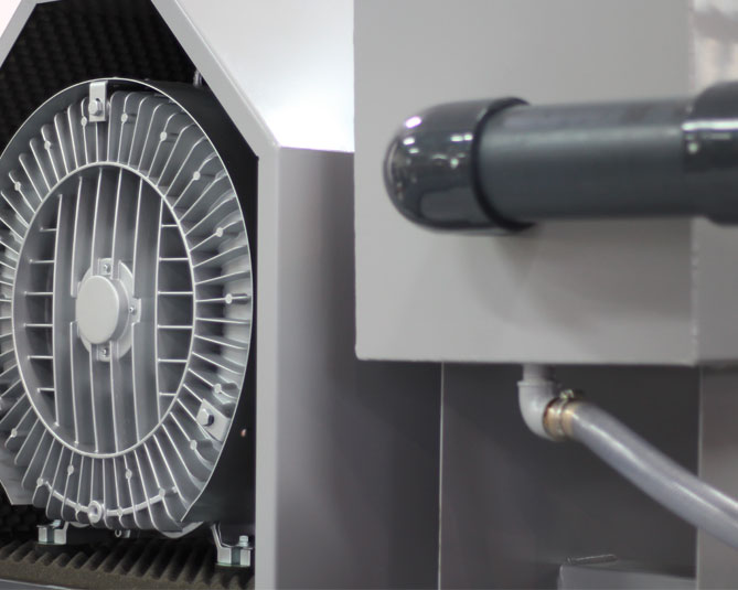 Der Exhaustor erzeugt in der Vakuumkammer einen Unterdruck. Dieser Unterdruck unterstützt den Mengendurchsatz erheblich und bewirkt einen besseren Ausnutzungsgrad des Filtermittels durch höheren Schmutzkuchenaufbau. Der aufgebaute Filterkuchen stellt eine zusätzliche, hochwertige Filterschicht dar und verbessert damit den Filtrationsgrad.