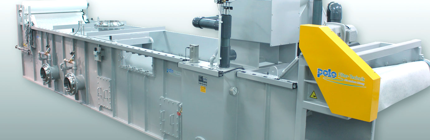 Mit zunehmender Verschmutzung des Filterhilfsmittels steigt der Flüssigkeitsspiegel auf der Schmutzseite des Filters an. Bei einem voreingestellten Flüssigkeitsniveau erfolgt der Vliesvortakt. Der mit dem Filtervlies ausgetragene Filterkuchen wird über die Abluft des Exhaustors zusätzlich getrocknet. Der Filtrationsprozess wird während der Vliesvortaktung nicht unterbrochen. Ein zusätzlicher Puffertank zur Zwischenspeicherung des verschmutzen KSS ist nicht notwendig!