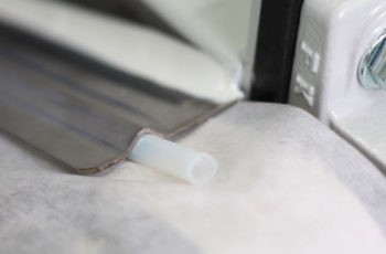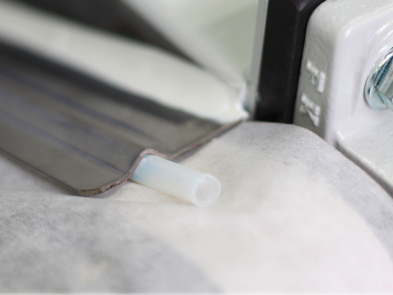 Eine Schlauchdichtung, beständig gegen alle handelsüblichen Kühlschmierstoffe, trennt die Schmutzkammer gegen die Reinseite zuverlässig ab.