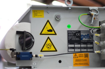 Ein Vliesmangelschalter (Option) gibt ein Signal, dass die Vliesrolle ersetzt werden muss.