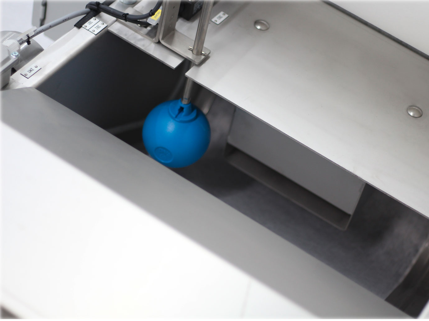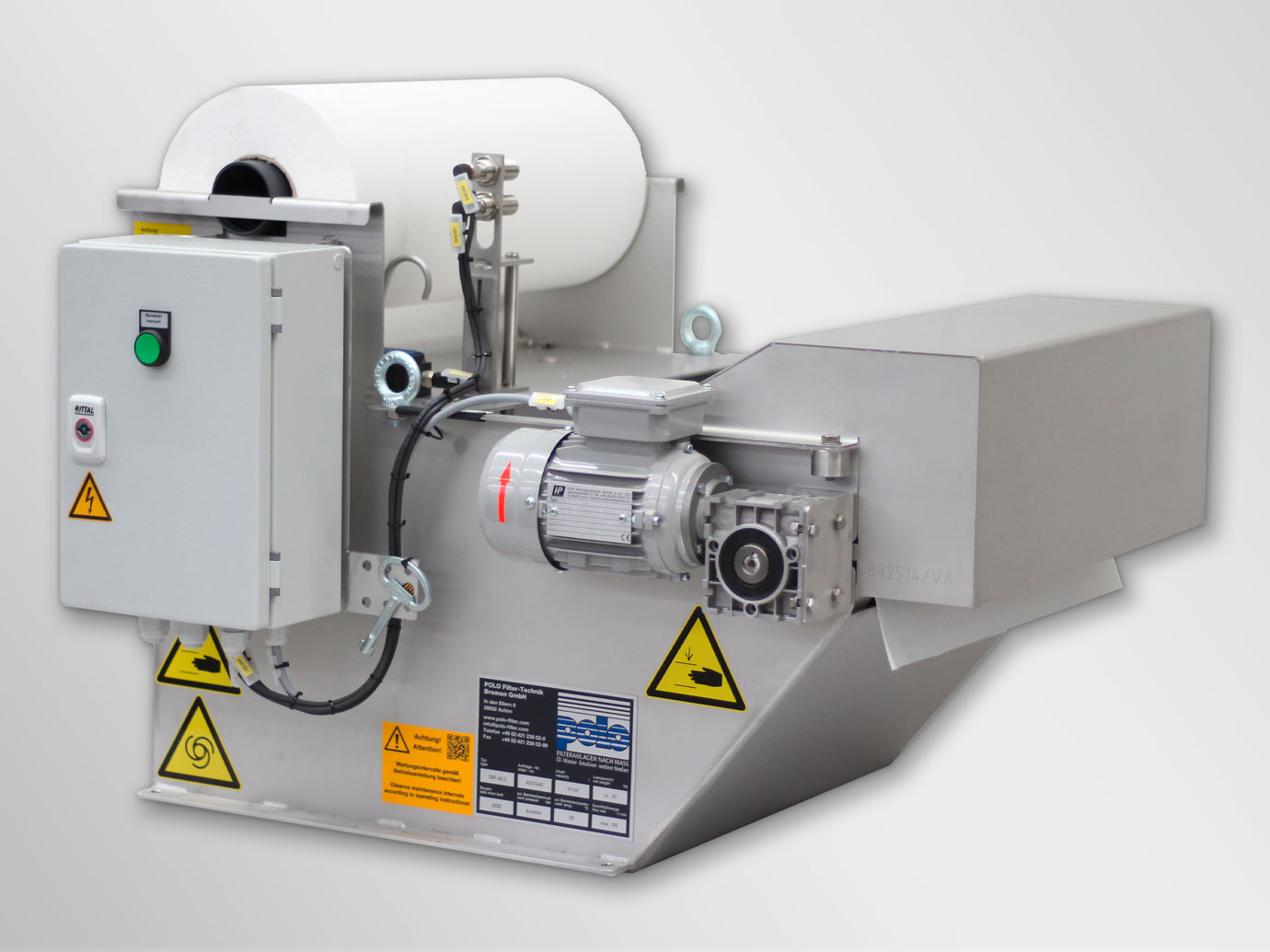 Die Flüssigkeit wird dem Filter über den Einlaufverteiler drucklos zugeführt, durchfließt das Filtervlies und gelangt gereinigt über den Auslauf in einen darunter stehenden Reintank.