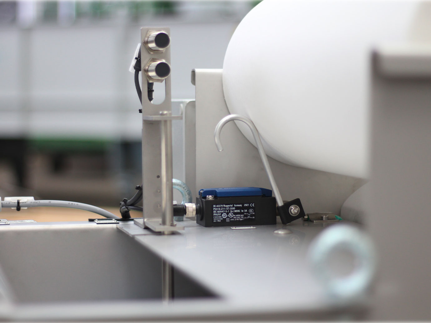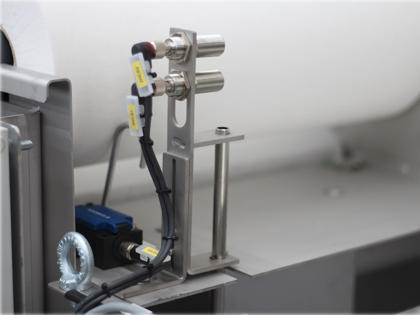 Ein Vliesmangelschalter (Option) gibt ein Signal, dass die Vliesrolle ersetzt werden muss.