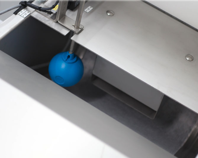 Die Form des Filterbetts ermöglicht einen hohen Flüssigkeitsspiegel. Dadurch wird der Mengendurchsatz gesteigert und das Filtervlies optimal genutzt. Auf dem Filtervlies lagern sich die Schmutzpartikel ab und vermindern mehr und mehr den Durchfluss.